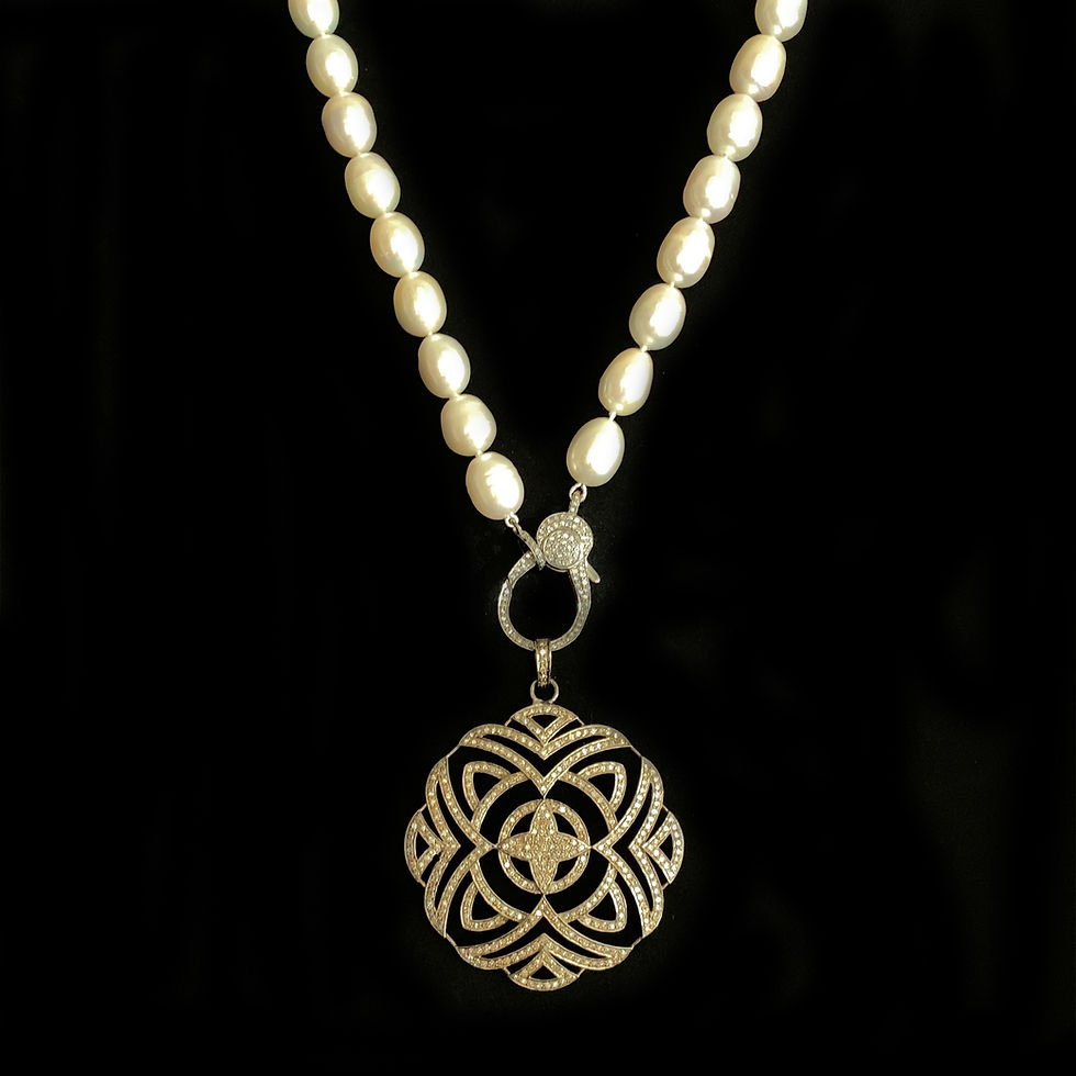 925 sterling silver Naja pendant featuring a large turquoise gemstone and a 1943 Liberty silver dollar.